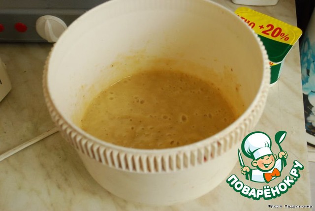 Аккуратно ввести йогурт, сильно не размешивая, чтобы получились мраморные разводы.