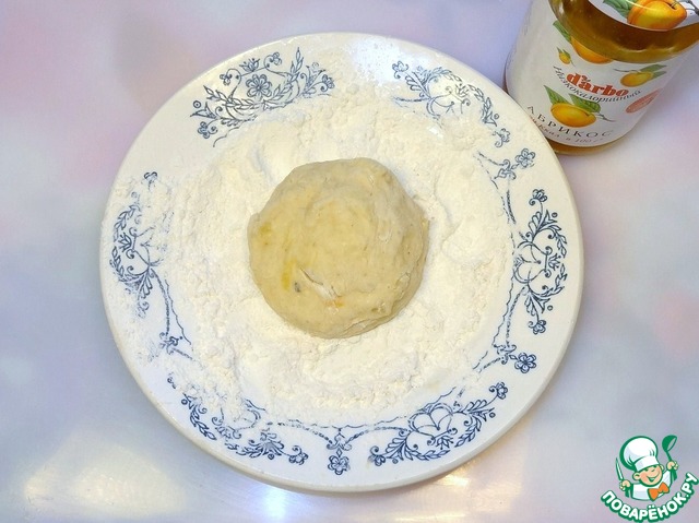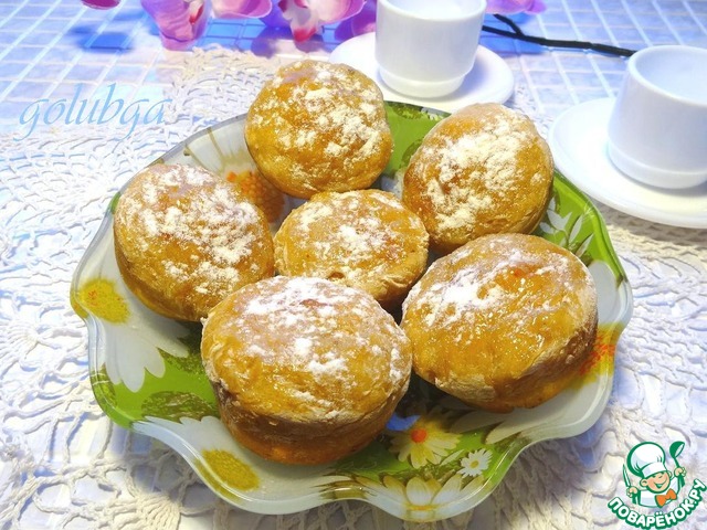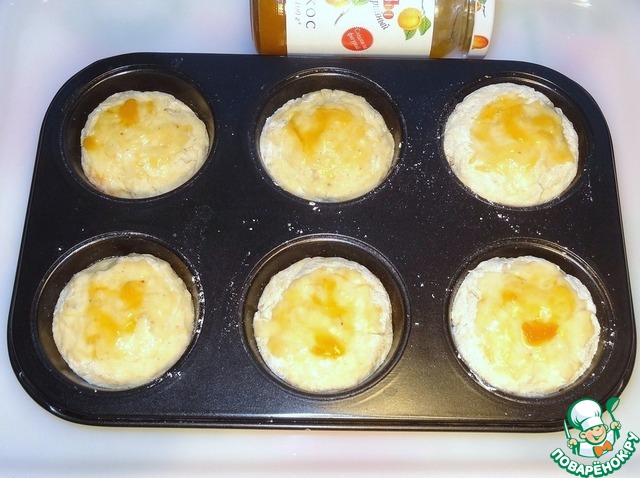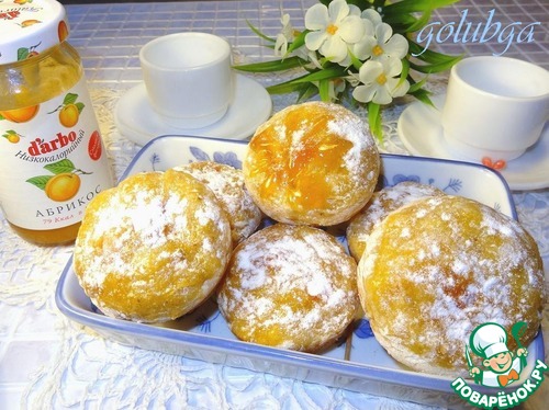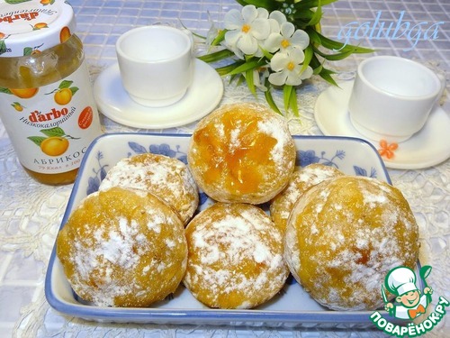 Так как я не добавляла в выпечку сахар, то сверху я смазала шарики немножко конфитюром, а вот после выпечки, можно еще добавить.