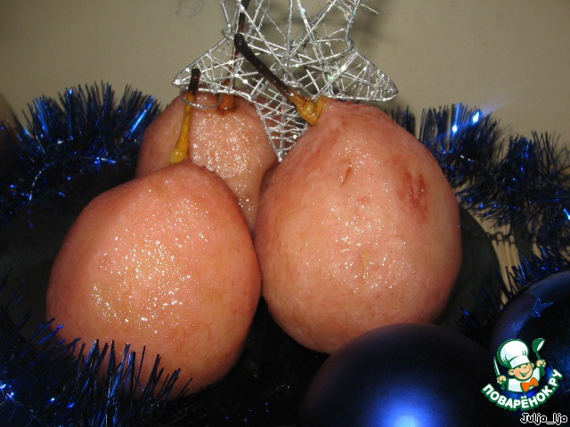 Груши очищаем, хвостики оставляем. Смесь доводим до кипения, помещаем груши, накрываем крышкой, убавляем огонь почти до минимума (у меня на электрической печке, максимум "9", я оставила на "3"), и томим минут 20-25. Если груши не полностью покрыты жидкостью (зависит от размера груш), нужно их время от времени переворачивать.