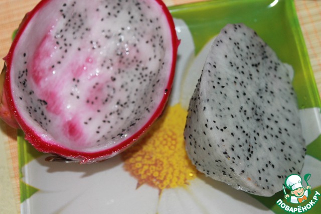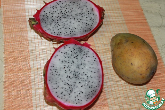 Мне достались прекрасные экзотические фрукты манго и питахайя, и я не могла себе позволить просто скушать их. Это слишком скучно )))