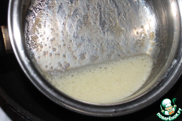 На водяной бане взбиваю желток с сахаром до расстворения сахара и вспенивания желтка
