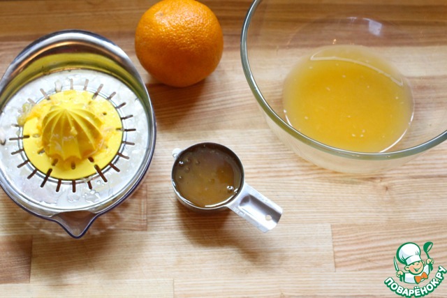 Выжать сок из половины апельсина и хорошо смешать с медом.