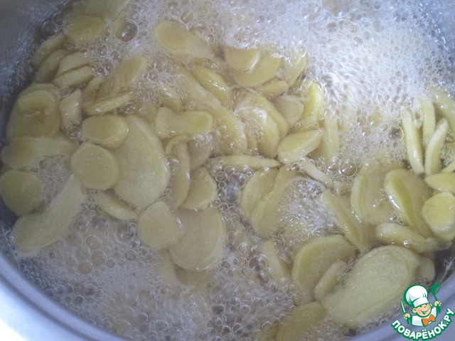 Мой рецепт отличается тем, что не нужно предварительно отваривать имбирь в воде. Может, для какого-нибудь поваренка этот рецепт будет полезен)).