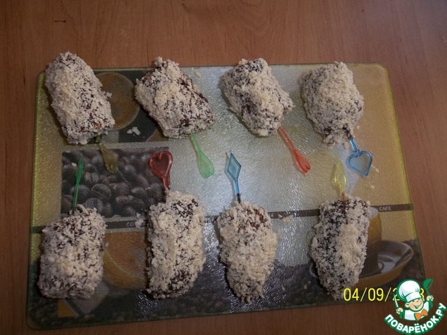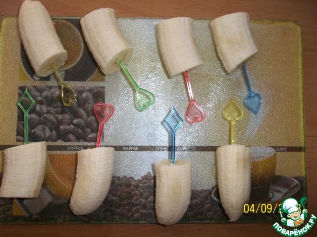 Затем обмакнуть каждый кусочек в горячий шоколад.