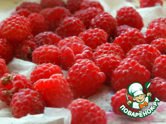 Малину помыть, перебрать, добавить в сироп к ревеню, аккуратно перемешать, снять с огня и дать остыть.