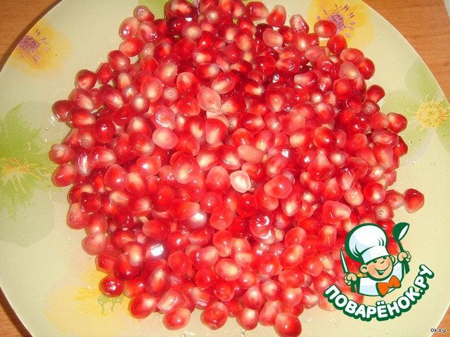 Из оставшейся половины зерен сделать сок, протерев через ситечко. Добавить в сок мед и хорошо перемешать. После добавить вермут.