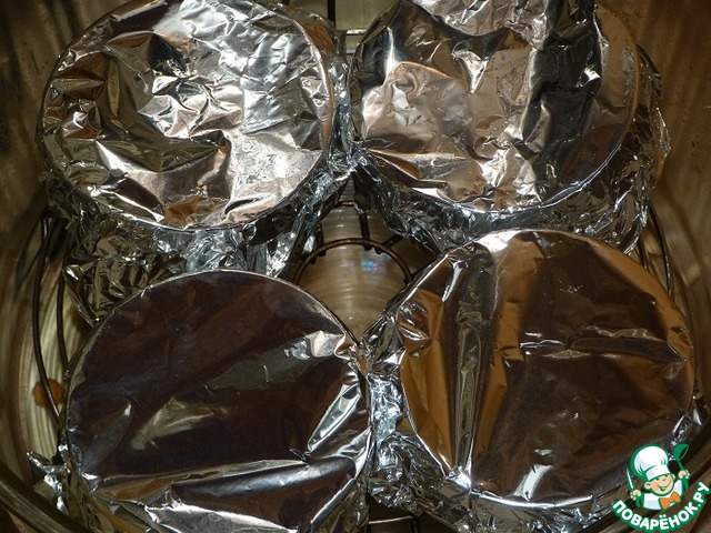 Формы накрыть фольгой и поставить в разогретую духовку. Выпекать 40-45 минут, через 20 минут фольгу снять.