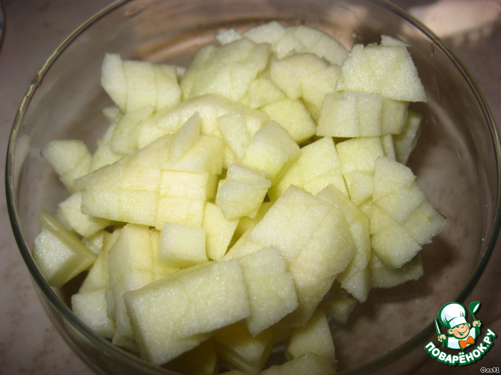 Яблоко очищаем от кожуры, режем на маленькие кубики
