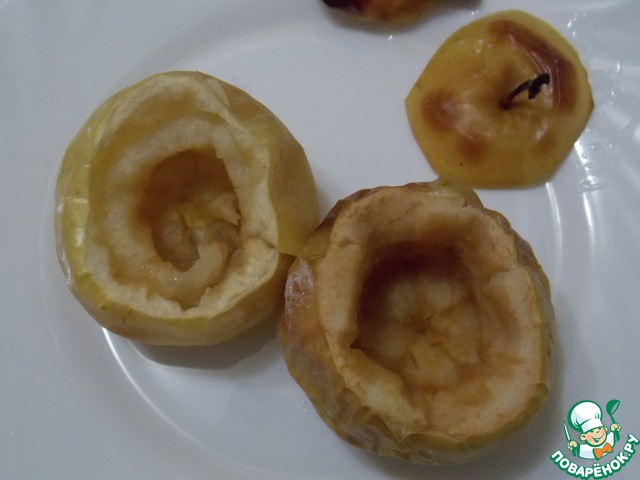 У яблок срезать верхушку (где веточка ) и убрать серединку, не повредив дно. Положить в посуду налив немного воды.
