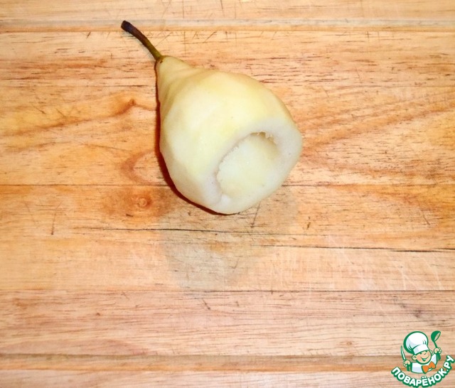 Груши вымойте, срежьте нижнюю часть, удалите сердцевину (это удобно делать чайной ложкой) и почистите.