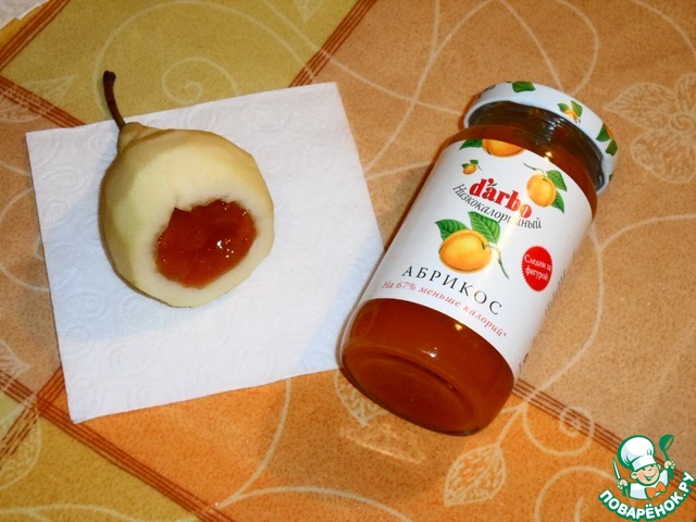 Груша, запеченная в тонком слоеном тесте с абрикосовым конфитюром