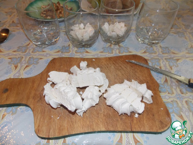 1 слоем нарезаем зефир и кладем на дно бокала.