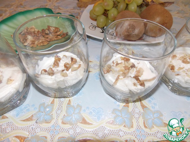 Затем еще 1 слой зефира, затем сметаны и чуть чуть орешков.