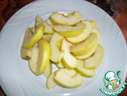 Яблоки разрезать пополам и удалить сердцевину. Нарезать дольками.