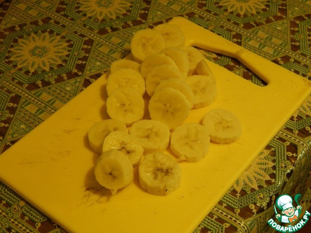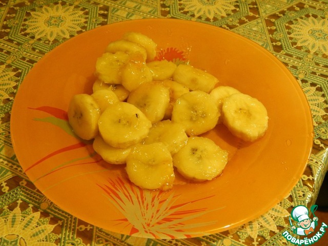 Раскладываем бананы по сковородке, в течение 0,5 - 1 мин. помешиваем и переворачиваем бананы.