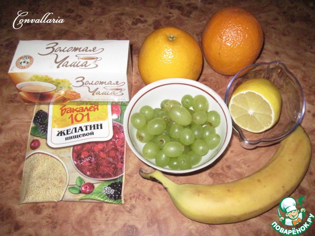 Заварить чай - 300 мл воды. У меня был чай зеленый байховый с липой и ароматом меда, пакетированный «Золотая чаша». Я заварила 2 пакетика.