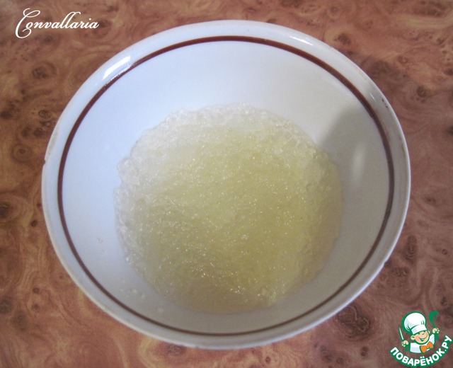 Через 5-7 минут извлечь заварку, добавить сахар, мед, лимонный сок. Также добавить желатин, хорошо перемешать до его растворения. Остудить.