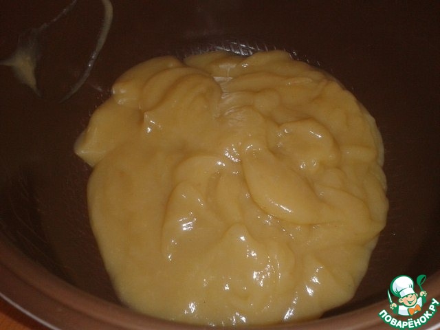 По истечению времени, яблоки охладить и отжать сок-пюре через марлю! получается вот такая каша!