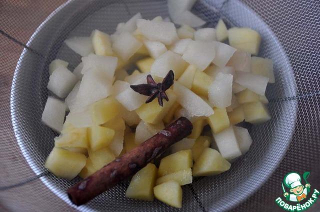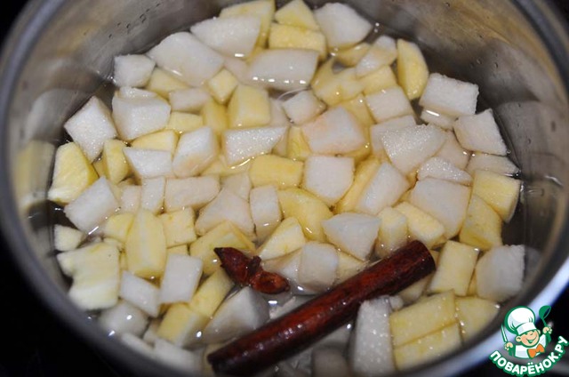 Яблоко и грушу моем, чистим, нарезаем маленькими кубиками.