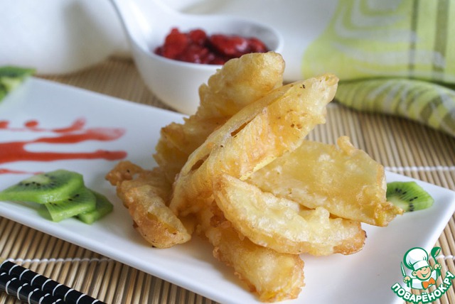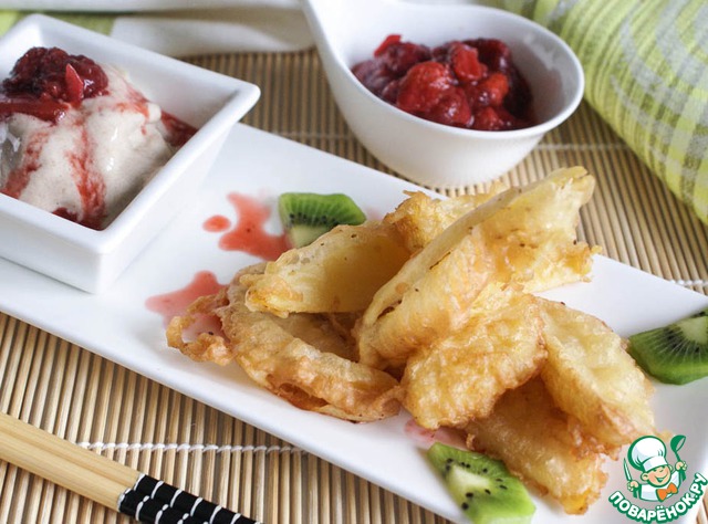 | К тэмпуре относятся блюда приготовленные особым способом в кляре и обжаренные во фритюре. В японской кухне тэмпура традиционно готовится из овощей, рыбы и морепродуктов. Я же предлагаю попробовать сладкую тэмпуру из фруктов. Настоятельно рекомендую попробовать именно из бананов. |