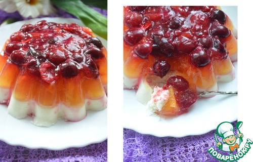 Апельсиновое заливное с вишней и конфитюром