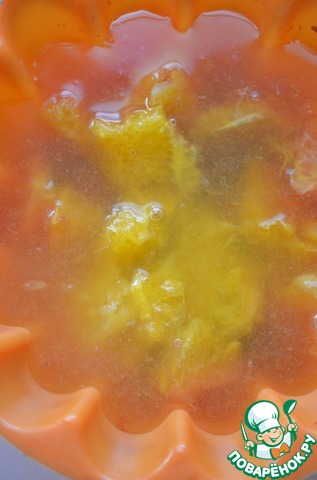 Залить апельсиновым соком (с желатином),