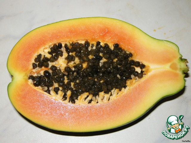 | После ужина непременно нужно побаловать себя фруктовым десертом из папайи, в ней содержится фермент, стимулирующий переваривание пищи. Очень легкий и безумно вкусный десерт порадует и вас, и ваших гостей! А детишки будут в восторге!!! |