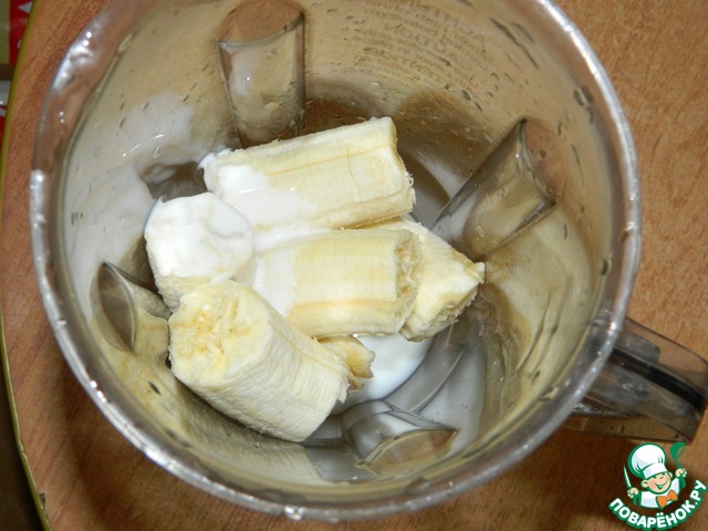 Далее взбиваем банан и ещё немного йогурта. И аккуратно выкладываем в креманки на киви.