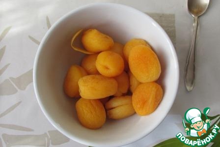 Курагу промываем и заливаем на ночь 1 литром воды.