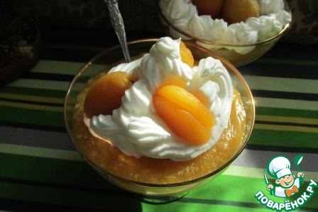 Вот теперь перекладываем кисель в креманки, украшаем фаршированной курагой. Можно ещё добавить легкие сливки.