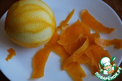 С одного крупного апельсина снять цедру при помощи овощечистки.