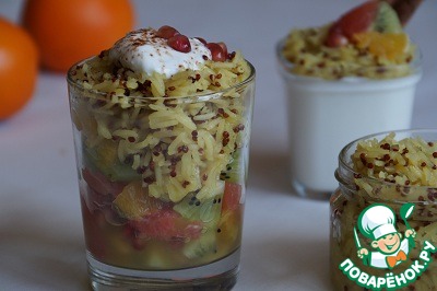 Добавьте к вашему фруктовому салату несколько ложек ароматного медового риса - и сытость и легкость вам обеспечена.
