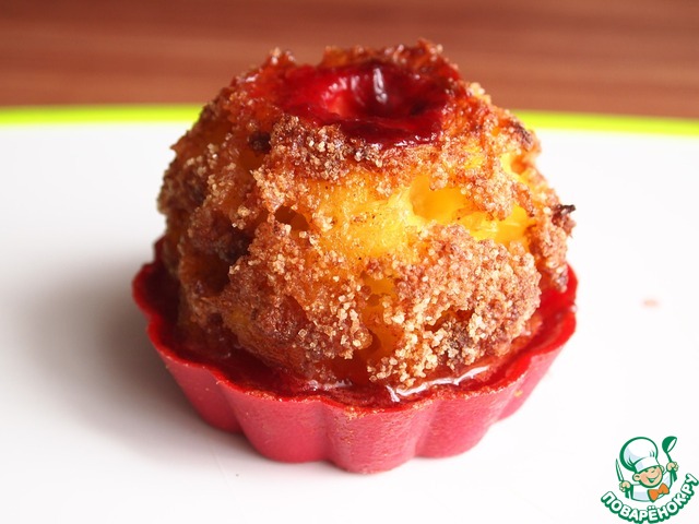 Затем ананас положить в формочку, в которой будем запекать. В середину ананаса добавить вишневый конфитюр d'arbo.