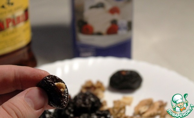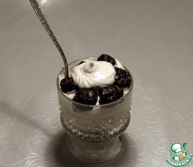 Вся суть десерта в слегка распаренном черносливе с грецким орехом. Сам по себе он будет чрезмерно приторным. А вот если его заправить взбитыми сливками, сливочным пломбиром, да хоть сливками из сперя, или всем вышеперечисленным вместе взятым, получится один из моих самых любимых десертов. Что характерно, в России, в заведениях практически ни где подобное не предлагают. Из за этого и возникло желание этим поделиться.