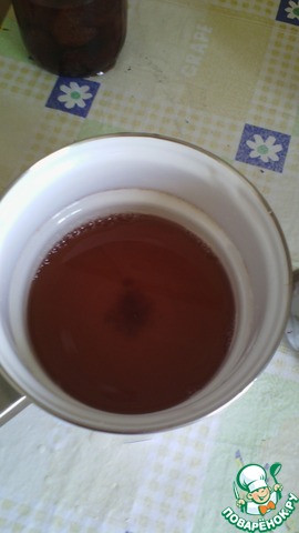 Когда масса начнет застывать - замочим оставшийся желатин в небольшом количестве кипяченой воды. Поступаем с ним также -распускаем на огне. Потом добавляем в него несколько ложек клубничного варенья, пока жидкость не станет красивого красненького цвета.