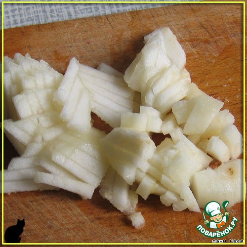 Грушу почистить, порезать соломкой.