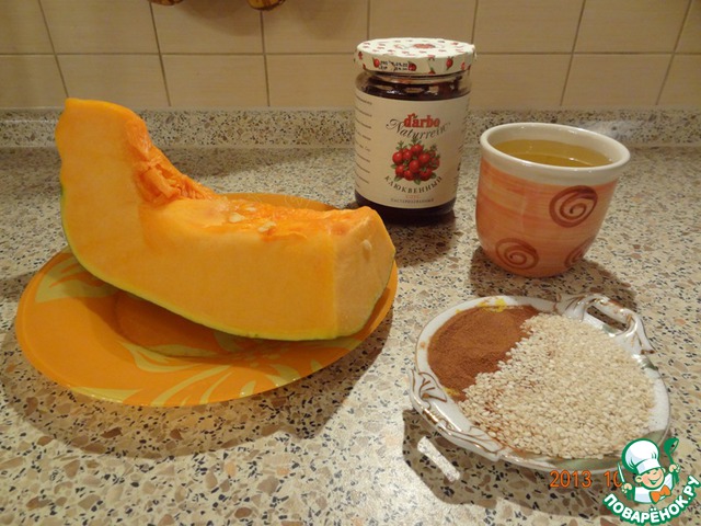 Приготовить необходимые ингредиенты. Тыкву вымыть, очистить кожуру, вынуть семечки