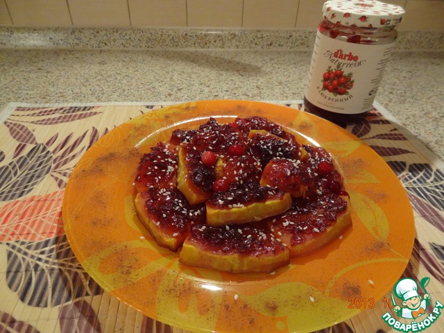 | Теплый витаминный десерт из тыквы и клюквенного соуса "D arbo". Кисло-сладкий вкус. |