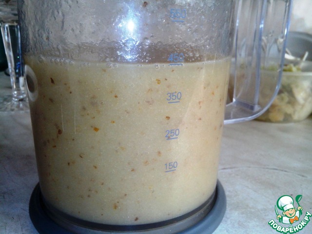 Добавляем к нему порезанные груши и взбиваем блендером на максимальной скорости до однообразной консистенции.