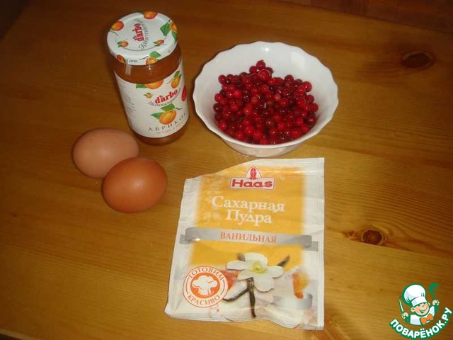 Все ингредиенты которые Вам понадобятся для этого блюда, ягоды в принципе можете взять любые, мы взяли замороженную клюкву.