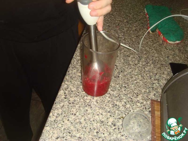 Делаем начинку из ягод. Для этого замороженные ягоды измельчаем в блендере.
