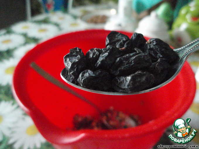 Промытый в кипятке изюм добавить к будущему коржику (мой изюм был крупноват, поэтому мне пришлось его немного измельчить). Снова хорошенько перемешать – изюм не слишком охотно вливается в общую тусу.