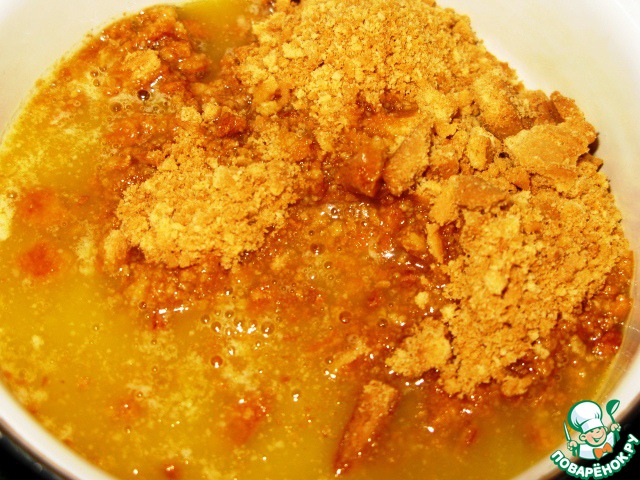 Делаем карамель: растопить сахар с 2 ст. л. воды.