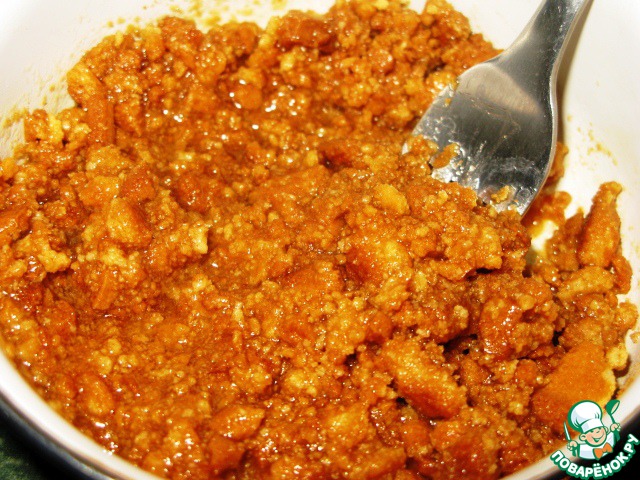 Крекер измельчим скалкой или толкушкой до крупных крошек.