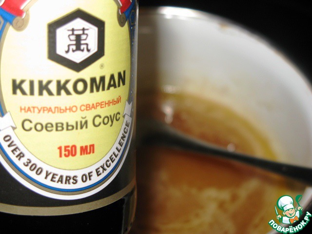 Снять с огня. Добавить 1 ст. л. соевого соуса.