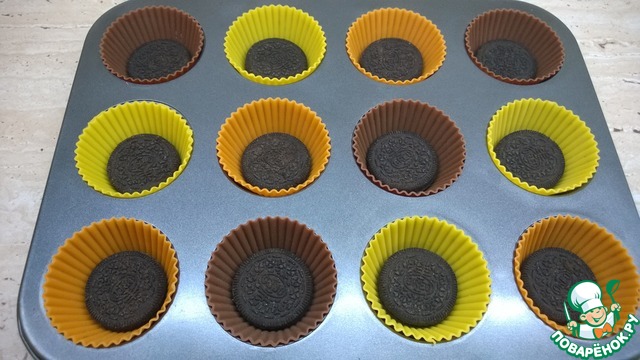 Достать из формочек и перевернуть, чтобы печенье оказалось сверху.