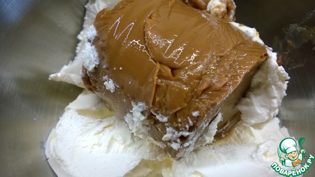 Взбейте сливочный сыр с помощью миксера на средней скорости до гладкости, добавить сгущенку. Взбейте массу до однородности. Уменьшите скорость до минимума и добавляйте по одному, яйца.