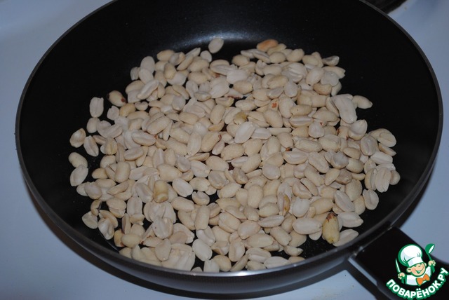 Арахис подсушиваем на сухой сковороде до румяности и орехового аромата