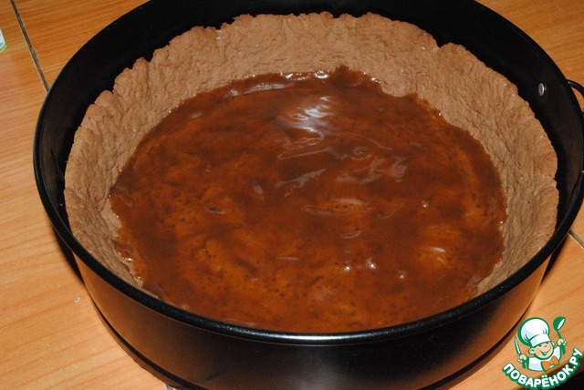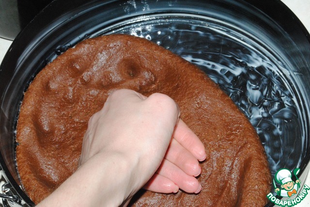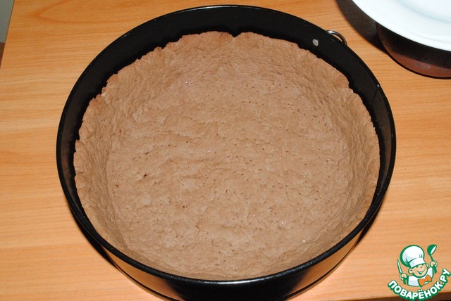 Утрамбовываем наше шоколадное тесто по периметру формы. Удобно делать это руками – чувствуешь толщину коржа, ее можно так неплохо регулировать
