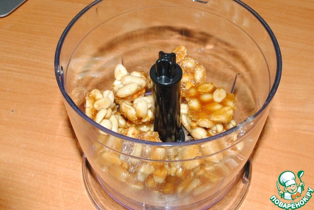 Основа остывает, измельчаем орехи до победного – до фракции пасты. Она выполнит роль сахара в сырной начинке